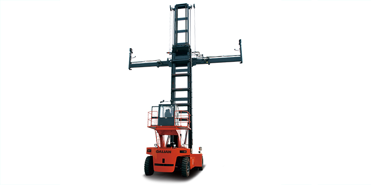 采用進(jìn)口空箱屬具。該屬具兩點(diǎn)鎖緊,電控操作,單梁結(jié)構(gòu);屬具伸縮、轉(zhuǎn)鎖、側(cè)移的控制閥全部安裝在屬具本體上,只需另接進(jìn)回油管和電纜就可以工作,方便可靠;伸縮托鏈管路安裝在筒外側(cè),維修方便、視野好。尤其是伸出時(shí)具有差速功能,為用戶的作業(yè)節(jié)省了時(shí)間,提高了作業(yè)效率。
